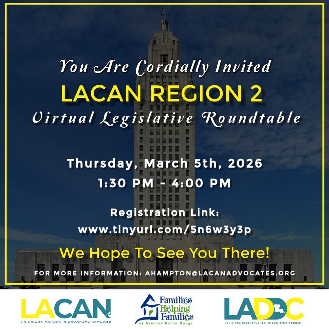 Families Helping Families of Greater Baton Rouge is a non-profit resource center organized and directed by family members of individuals with disabilities. We support families whose members have physical, cognitive, mental, emotional, or behavioral disabilities. Our own experiences further our commitment in reaching out to these families. We serve the following parishes — East Baton Rouge, West Baton Rouge, East Feliciana, West Feliciana, Ascension, Pointe Coupee, and Iberville.